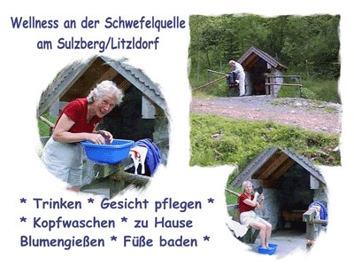 Wir beginnen den Anstieg bei der Kirche (1) in Litzldorf und folgen den Wegweisern zum Sulzberg. Am Hinweis zur Schwefelquelle (2) vorbei, führt uns der schmale Weg zum oberen Litzldorfer Wasserbehälter. Am Talende (3) zweigen wir nach links ab und steigen den Pfad hinaus zum Westrücken (5). Nun den Rücken hinauf bis zum Gipfel (5). Den Abstieg treten wir nach SW an, steil bergab zu den Almwiesen der Schlipfgrub (6) und weiter durch den Bergwald hinunter zur Schwefelquelle. Nach ausgiebiger Wellness an der Quelle, treten wir den Rückweg nach Litzldorf an, zweigen auf halben Weg nach links ab hinunter zum Wasserfall. Den Bach folgend kommen wir zum Zementwerk, einem Industriedenkmal aus dem 19. Jahrhundert. Nun zurück ins Dorf, wo uns die Wirtsleute Lisi & Hans vom Gasthof Höss zu einer gemütlichen Einkehr erwarten. |